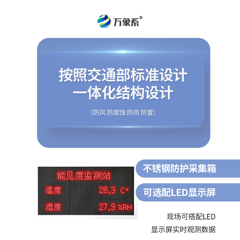 在當今社會快節奏的生活環境中,能見度對我們的生活至關重要,在低能見度的情況下,交通事故經常發生,萬象環境生產的WX-N80能見度傳感器可以全天候監測大氣能見度,提供及時準確的能見度信息,能見度傳感器主要安裝在高速公路沿線能見度監測站上,可對高速公路沿線的能見度,風速,風向,溫度,濕度大氣壓力,等進行監測,并將監測信息及時傳送到檢測中心,公交通管制參考,在惡劣氣象條件下能及時發出警示信息,以多種方式告知管理人員和駕駛員,以提高高速公路的行車水平。···
